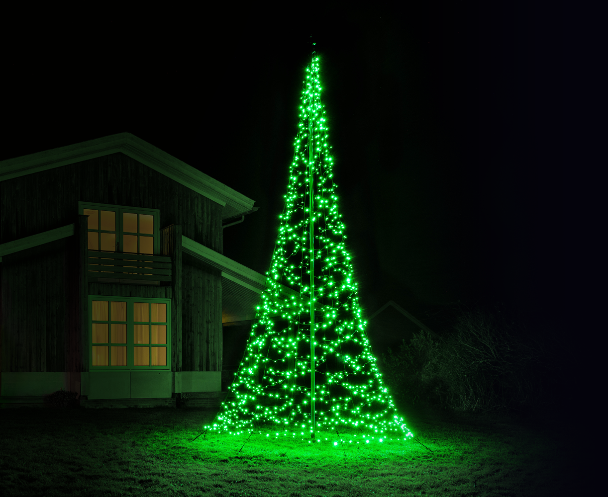 This Lumedi Smart Luxury 1200 Led is an outdoor Christmas tree designed for a 6-meter-high flagpole. The Lumedi features energy-efficient multicolor LED lighting that can be controlled via an app. The tree has a diameter of 300 cm.