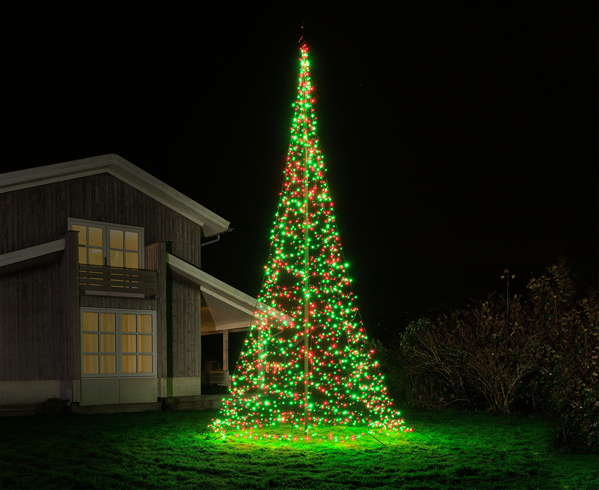 Le Lumedi Premium Duo 2000 Led est un sapin de Noël pour mât de drapeau, adapté à un mât de 7 mètres de haut. Le Lumedi comprend, en plus de la lumière blanc chaud, un éclairage rouge et vert. Le sapin a un diamètre de 350 cm. L’éclairage peut être commandé à l’aide d’une télécommande pratique.